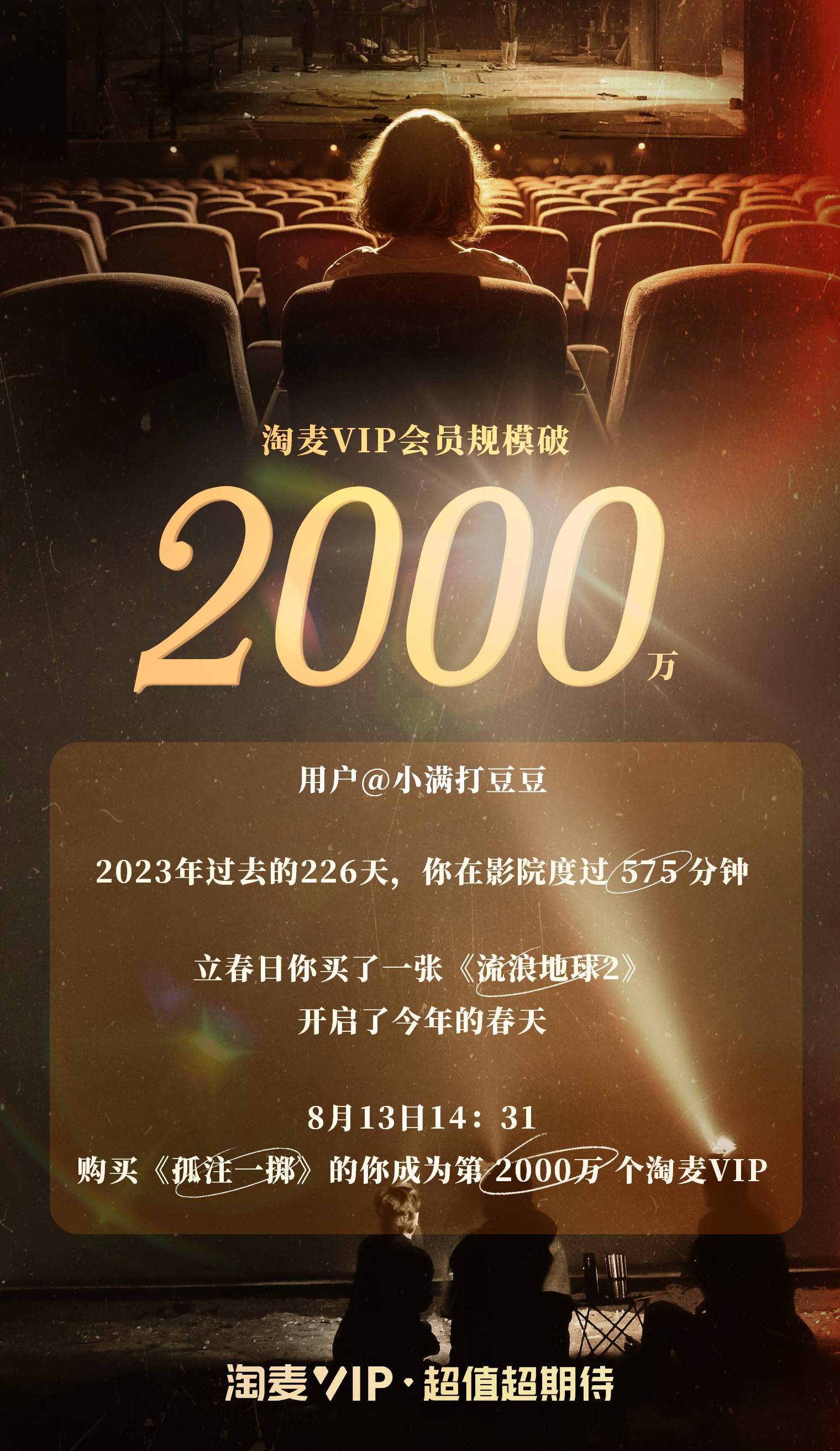 近日,成立仅两年的“淘麦vip”会员体系正式宣布会员数量已突破2000万,活跃会员数量相比上财年翻番,会员规模再创新高!作为淘票票和大麦推出的行业首个“电影 演出”联合会员体系,伴随着电影和演出市场的强势复苏,“淘麦vip”会员体系持续升级迭代,致力于为用户提供优质购票体验、超期待的内容权益和个性化服务等更好的文娱消费体验,打造良性的文娱消费生态。