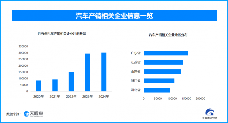 天眼查专业版数据显示,截至目前我国现存在业、存续状态的汽车产销相关企业超154.6万家。其中,2025年截至目前新增注册相关企业约13.9万余家,从企业注册数量趋势来看,近五年间,汽车产销相关企业的注册数量呈现出逐年增长的态势,并在2024年达到顶峰。