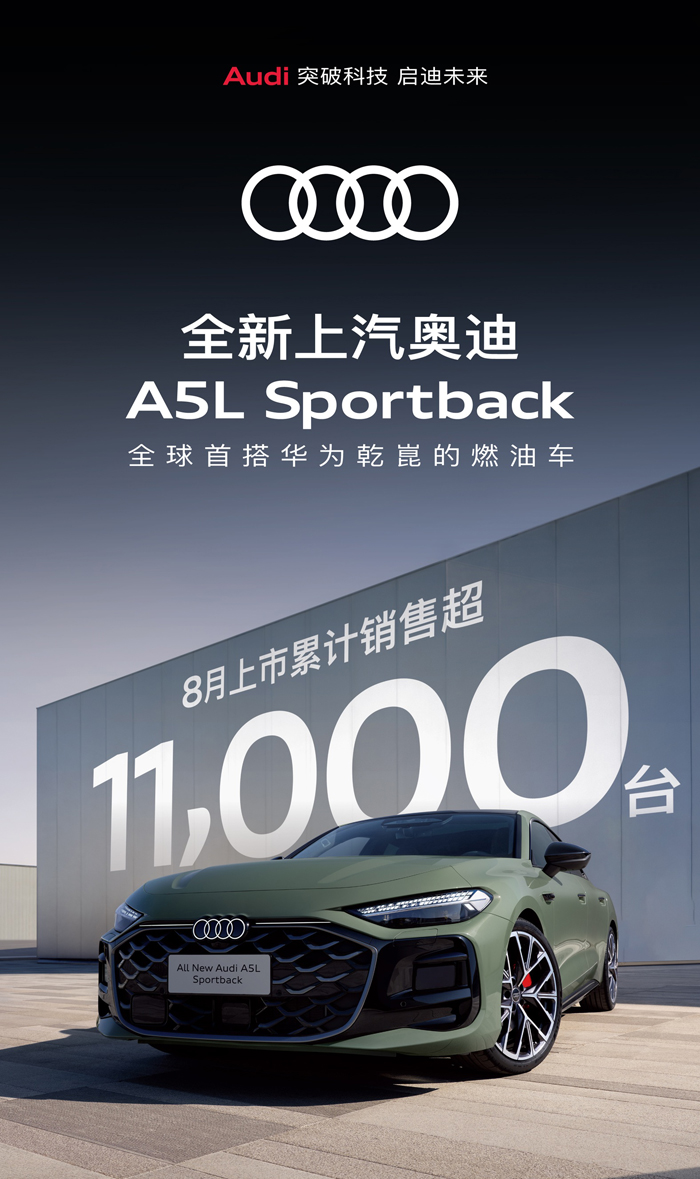 豪华智慧性能轿车全新上汽奥迪a5l sportback自上市以来,凭借卓越的产品实力,迅速点燃市场热情。上市仅两个多月,累计销售超11,000台,这一亮眼成绩不仅充分印证了消费者对产品价值的高度认可,更为上汽奥迪品牌持续向上注入强劲动能。
