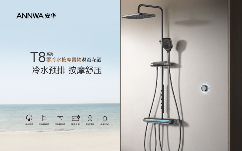 在本次大会中备受关注的gt7 pro七星级抑菌智能坐便器,是安华卫浴“科技守护健康”理念的集中体现。该产品搭载“15重抑菌科技”,将专业级抗菌技术贯穿于如厕全流程,从落座、清洗、冲刷到空气净化,为用户提供周全的健康防护。另一明星产品t8零冷水按摩置物花洒,则专为现代久坐人群与运动爱好者设计。其智能预排冷水系统实现 “即开即热”,结合四重出水模式与空涡增压水氧混合技术,带来环绕式3d按摩体验,将日常淋浴升华为身心焕活的私享仪式。这两款产品正是安华卫浴以“智能化 人性化”回应年轻消费者需求的典型代表。